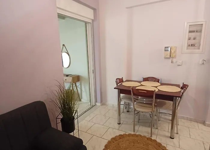 Een keuken omvat een koelkast en een oven voor u. De KTEL Amaliada bushalte bevindt zich op 900 meter wandelafstand van dit appartement.